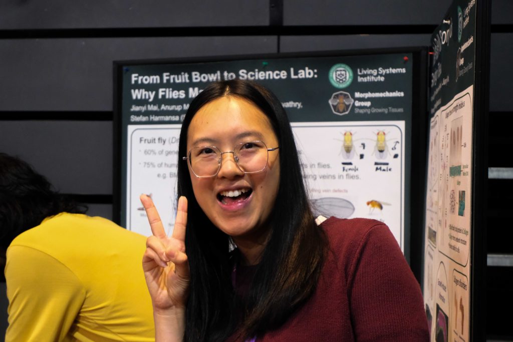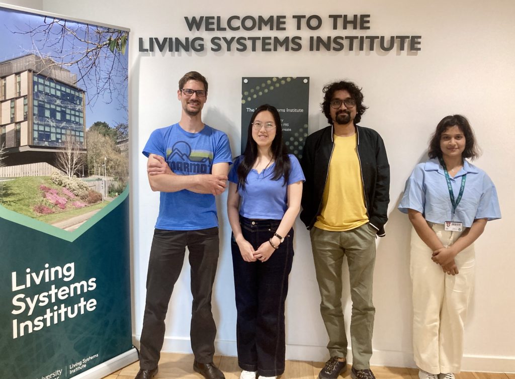 Harmansa Group We are recruiting! PhD project supported by the LSI PhD program (details below). Application deadline 26th November 2025! Morphomechanics – Shaping Growing Tissues Morphogenesis describes the generation of biological form during development. It is an inherently mechanical process in which cellular activities such as contractility and growth generate stresses that shape tissues into their characteristic three-dimensional structures. Proper tissue morphology is essential for organ function, and defects in morphogenesis are linked to developmental disorders and disease. Our research focuses on the mechanical interplay between growing epithelial tissues and their basement membranes (BMs)—specialised sheet-like extracellular matrices that support and constrain epithelia. Much like the foundation of a building, the BM provides structural support, and its mechanical and growth properties strongly influence tissue shape. We recently showed that differential growth between an epithelium and its BM generates mechanical stresses that guide tissue morphology (Harmansa et.al. 2023). By combining Drosophila genetics, advanced imaging, quantitative biophysical tools, and data-informed modelling, we aim to uncover how such stresses emerge during growth and how they direct the mechanics of morphogenesis. For more details on our current research, news and open positions please visit our group’s webpage. News and Recent Publications 10/2025 Check our new review article on the role of growth induced stresses in animal morphogenesis. 09/2024 Our new preprint is online – ‘Mechanical regulation of cuboidal-to-squamous epithelial transition in the Drosophila developing wing’ Diverse cell shapes in the Drosophila wing disc – The large cells of the squamous epithelium (blue) overlay the smaller columnar epithelium (magenta). Open Positions We are looking for a PhD student to join our growing research team. The studentship is supported by the LSI PhD program (Apply here). DEADLINE: 26th of November 2025 ‘Forces in the Matrix – Developmental Biophysics Across Species’ Co-supervised by Prof. Steffen Scholpp and Dr. David Richards This PhD project explores how tissues bend and fold during development, focusing on the basement membrane, a thin but rigid layer of proteins that supports and shapes cells. Its main building block, Collagen IV, is essential for healthy growth, and mutations cause a range of human diseases affecting the eyes, kidneys and blood vessels. By comparing two model systems, the fruit fly wing and the zebrafish eye, this project will uncover universal rules of how Collagen IV mechanics sculpt organs, with broad implications for human health and tissue engineering. More details on the project Project summary – How do tissues bend, fold and sculpt themselves into functional organs? This central question in developmental biology lies at the heart of morphogenesis, where mechanical forces and extracellular structures work together to shape tissues. The basement membrane (BM) is a specialised extracellular matrix that not only supports epithelia but also actively drives their form. Its major structural component, Collagen IV, builds a crosslinked network essential for stability, growth and signalling. Mutations in Collagen IV compromise BM integrity, leading to developmental defects and human diseases, including eye malformations, kidney disorders and vascular pathologies. Despite this broad relevance, the mechanical role of the BM in shaping organs is still poorly understood.This PhD project will investigate how Collagen IV organisation and BM dynamics generate mechanical stress and drive morphogenesis across species. Two powerful in vivo models, the Drosophila wing disc and the zebrafish optic cup, provide complementary systems in which epithelial sheets bend into dome-like shapes. Both processes critically rely on BM mechanics, yet the underlying principles remain unclear. Building on our recent discovery that BM growth drives stress accumulation and tissue bending in the fly wing (Harmansa et al., Nat. Commun., 2024), we will test whether similar mechanisms govern vertebrate eye development.The candidate will combine cutting-edge genetics (CRISPR-Cas9), advanced live and super-resolution imaging, and biophysical techniques (atomic force microscopy, laser ablation, rheology) with theoretical modelling. This interdisciplinary approach will reveal conserved principles of BM-mediated morphogenesis, offering insights with broadimpact on collagen-related diseases and future applications in tissue engineering. Get in touch with Stefan for more details or to informally discuss the project (s.harmansa@ exeter.ac.uk). The Morphomechanics group in June 2025 (left to right: Stefan, Jianyi, Anurup & Abhirami) Want to join our interdisciplinary research group? Are you excited by the huge diversity of shapes observed in biological systems and how they are generated? Would you like to work in an interdisciplinary environment and bridge between biology, physics and scientific computing? Then come and join our young and dynamic team in beautiful Exeter.We are always looking for innovative, passionate and motivated undergraduate students, graduate students and postdocs with a strong interested in the biophysical aspects of shape generation during animal development. In addition to the official openings, we always welcome spontaneous candidatures for internship, master, Ph.D. and postdoc positions. Please get in touch with Stefan if you you would like us to host your own PhD project (e.g. LSI PhD Programme) or postdoctoral fellowship (e.g. Wellcome Early Career Award or HFSP Cross Disciplinary Fellowships). In general, you can always contact Stefan (s.harmansa@exeter.ac.uk) to inquire about general information and future openings. Events and Outreach 12th October 2025 – Our group was thrilled to take part in this year’s Futures Event at the Exeter Phoenix, where we hosted an int